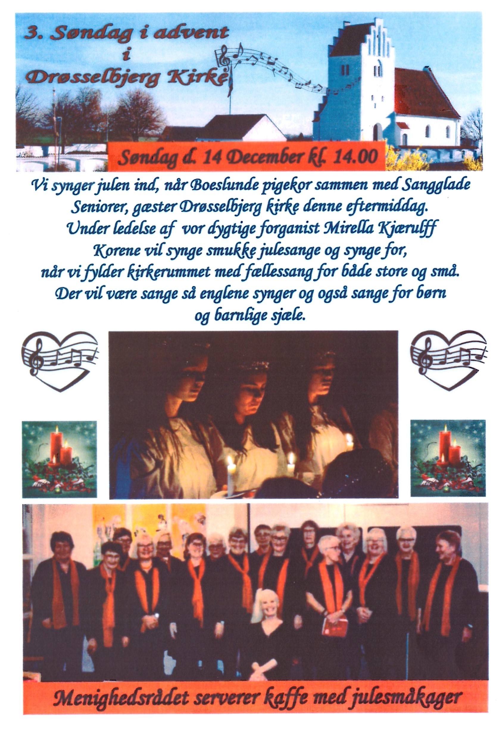 Gudstjeneste i Drøsselbjerg Kirke 3.s. i advent og efterfølgende synges julen ind.