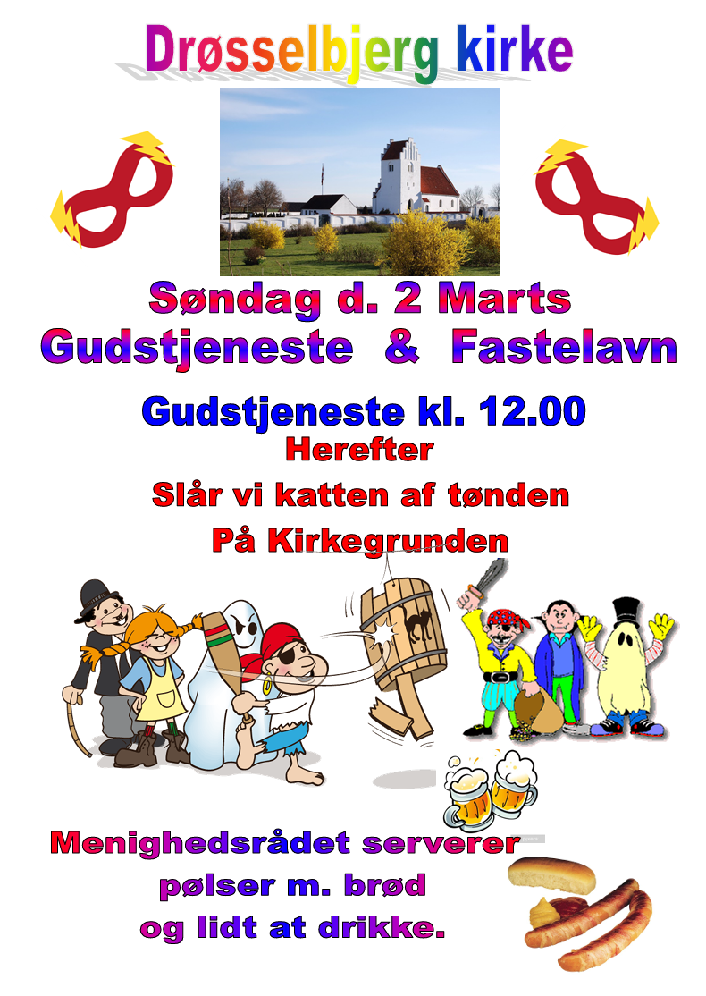 Gudstjeneste i Drøsselbjerg Kirke – Fastelavn. Tøndeslagning efter gudstjenesten